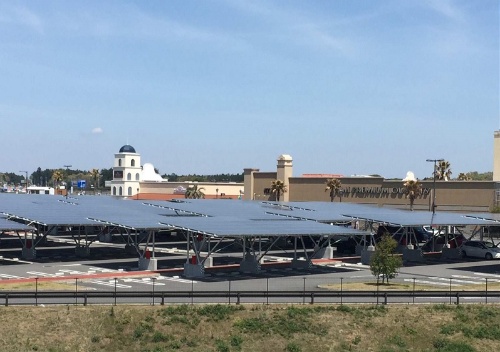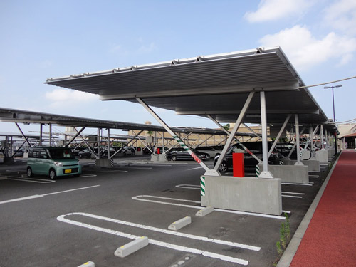 除了地球變暖對策外,還具有隔熱和擋雨的功能,對開車來商場的顧客來說,舒適性得到提高的優(yōu)點(diǎn)也很大。