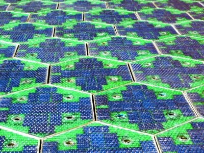 經(jīng)過不懈努力,布魯索夫婦發(fā)明出一種正六邊形的太陽能電池板(Solar Roadway),其表面是一種超耐磨的特殊玻璃,承重最高達(dá)125噸,能保證汽車的安全行駛。同時(shí),太陽能電池板的最底層使用的是回收塑料顆粒,綠色環(huán)保。太陽能電池板被發(fā)明出來后,布魯索夫婦就在自己家的后院開始了鋪路測試,并打造出一個(gè)模擬停車場。