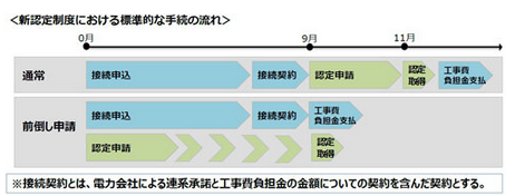 除此之外,在新認(rèn)證制度的申請(qǐng)手續(xù)方面規(guī)定,為了加快新認(rèn)證制度的申請(qǐng)流程,無論有沒有簽訂并網(wǎng)協(xié)議,都可以提前申請(qǐng)認(rèn)證。還有并網(wǎng)協(xié)議附帶的工程費(fèi)負(fù)擔(dān)金向電力公司的支付期限,原則上是簽訂協(xié)議之后的1個(gè)月內(nèi)。