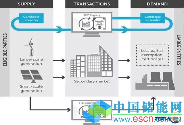 澳大利亞是世界上最早在全國范圍內(nèi)實(shí)行可再生能源配額制的國家。2000年,澳大利亞政府通過《可再生能源法案》,發(fā)布強(qiáng)制性可再生能源目標(biāo),對(duì)相關(guān)電力批發(fā)商規(guī)定了購買一定比例可再生能源電力的法定義務(wù)。2001年4月1日,澳大利亞可再生能源證書系統(tǒng)在全國范圍內(nèi)正式運(yùn)行。從2011年1月1日開始,澳大利亞將可再生能源證書分為大規(guī)模證書(LGCs)和小規(guī)模證書(SGCs)兩種類型,其中大規(guī)模RECs主要面向發(fā)電站,小規(guī)模RECs主要面向太陽能熱水器、空氣源熱躉熱水器和小型發(fā)電機(jī)組。
