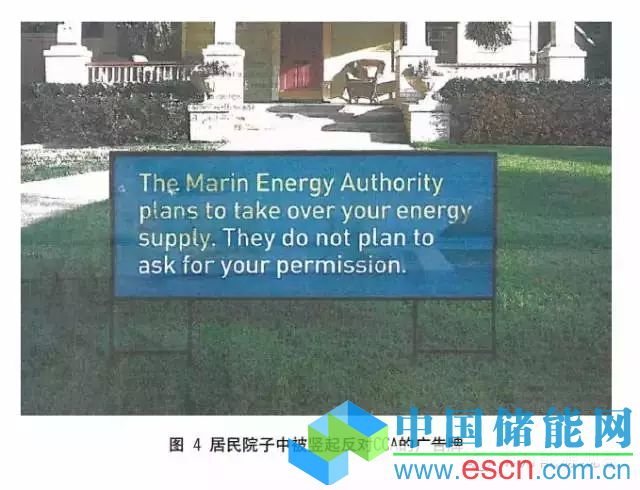 公用事業(yè)公司還曾把寫著“你應(yīng)當(dāng)退出CCA(You should Opt Out)”的牌子直接豎到了居民的院子里(如圖4所示),造成民眾一定程度的疑惑和對CCA的反感。