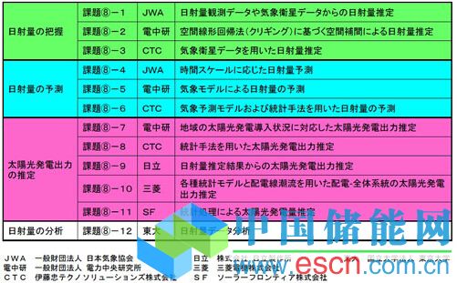該實證事業(yè),以開發(fā)大量導(dǎo)入光伏發(fā)電時所必需的輸出預(yù)測技術(shù)為目的。實證從2011年度開始,為期3年,有東京大學(xué)、伊藤忠Techno-Solutions公司(CTC)、Solar Frontier、日本氣象協(xié)會、日立制作所、三菱電機、電力中央研究所及10家電力公司參與。