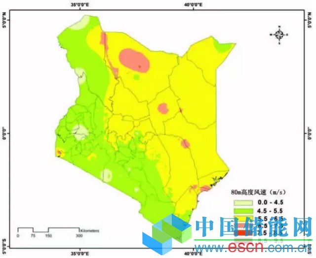 圖3 肯尼亞80m高度風(fēng)能資源分布圖