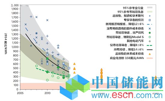 據(jù)TheCarbonBrief報(bào)道,早在2013年,國際能源屬(IEA)曾經(jīng)預(yù)測,到2020年,電動汽車電池成本將下降到300美元/千瓦時(shí)。然而,NatureClimateChange的研究人員認(rèn)為,電動汽車行業(yè)可能已經(jīng)提前達(dá)到了這一目標(biāo),2007年至2014年之間,全行業(yè)平均成本從1000美元/千瓦時(shí)下降到410美元/千瓦時(shí),平均每年下降14%。某些領(lǐng)先企業(yè),例如日產(chǎn)和特斯拉已經(jīng)跨越了IEA預(yù)測的300美元/千瓦時(shí)屏障,去年起電池成本很可能已經(jīng)更便宜,價(jià)格可能比最近許多同行的評估低2至4倍,每年降幅為8%。