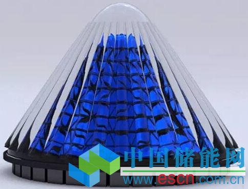一個(gè)一米直徑大的錐形支架上,裝著幾百個(gè)三角形的光伏電池,包裹在一個(gè)“密封外透鏡聚光器”里面。光伏旋轉(zhuǎn)的動(dòng)力來(lái)自少量的太陽(yáng)能電力和磁懸浮系統(tǒng),減少了噪音,也幾乎無(wú)需保養(yǎng)。