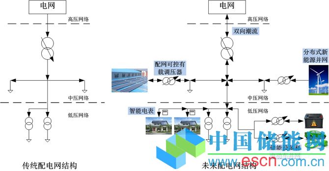 傳統(tǒng)配電網(wǎng)是單向電流流動,配電網(wǎng)只接收負(fù)荷,變壓器為普通配電網(wǎng)臺區(qū)變壓器,配以簡單的保護(hù)和自動化、通信設(shè)備。未來配電網(wǎng),即所謂的智能配電網(wǎng)擁有復(fù)雜的分布式供電系統(tǒng),造就了復(fù)雜的雙向潮流,需要安裝智能電表等測量裝置,并在低壓側(cè)有儲能設(shè)備和電動汽車并網(wǎng),需要配電網(wǎng)對低壓端口進(jìn)行調(diào)控和雙向通信,不論中壓還是低壓都將配有復(fù)雜的線路保護(hù)。這些巨大的變化發(fā)生之快,是很多配電網(wǎng)運(yùn)營商猝不及防的。至今,還只有少數(shù)配電網(wǎng)運(yùn)營商擁有效率極高的監(jiān)控系統(tǒng),不論配電網(wǎng)運(yùn)營商還是輸電網(wǎng)運(yùn)營商未來必須要快速地和經(jīng)常性地應(yīng)對動態(tài)的發(fā)電曲線、潮流逆向、配網(wǎng)側(cè)頻繁無功補(bǔ)償裝置投切和電壓調(diào)節(jié)等新的挑戰(zhàn)。