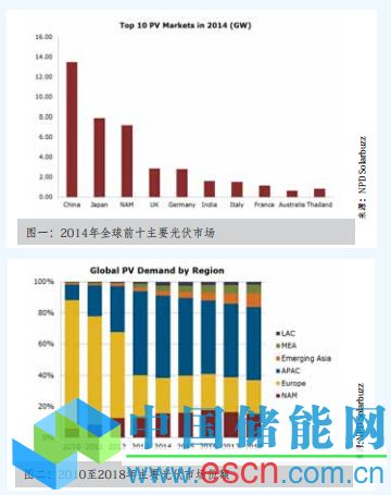 中國(guó)儲(chǔ)能網(wǎng)訊:根據(jù)NPDSolarbuzz的調(diào)研,2014年全球光伏市場(chǎng)將繼續(xù)保持高速增長(zhǎng),市場(chǎng)領(lǐng)跑者仍然是中國(guó)日本和北美,中國(guó)市場(chǎng)憑借接近14GW的安裝量預(yù)期排名第一,緊隨其后的日本市場(chǎng)和北美市場(chǎng)也都有著超過(guò)7GW的規(guī)模,而新興市場(chǎng)占全球市場(chǎng)的份額也在不斷提高,排名按全年需求預(yù)測(cè)順序排列(如圖一)。