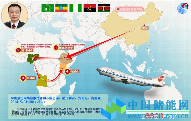 中國(guó)儲(chǔ)能網(wǎng)訊:國(guó)務(wù)院總理李克強(qiáng)結(jié)束了為時(shí)一周的對(duì)非訪問(wèn)乘專(zhuān)機(jī)回到北京。在非盟總部的演講中李克強(qiáng)明確提出,2020年中非貿(mào)易規(guī)模要達(dá)到4000億美元左右,中方對(duì)非直接投資存量向1000億美元邁進(jìn)。除貿(mào)易量的要求外,此次李克強(qiáng)出訪期間對(duì)于“中國(guó)制造”的大力推廣也甚為引人注意,除了赴歐洲時(shí)大力“推銷(xiāo)”的高鐵技術(shù)外,此次李克強(qiáng)還為非洲帶去了中國(guó)的飛機(jī)、高速路、光伏甚至衛(wèi)星技術(shù)。李克強(qiáng)在每個(gè)國(guó)家都推廣了哪些“中國(guó)制造”?下文為你一一介紹(見(jiàn)圖)。