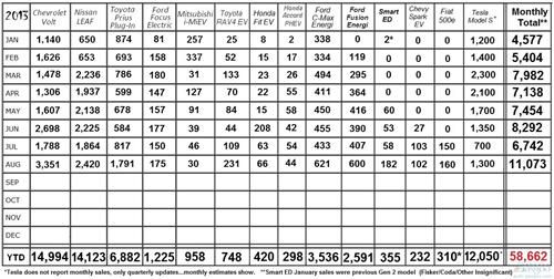 1到8月份,美國市場插電式電動車累計銷量58,662輛,對比去年同期的25,304輛,同比提升131.8%。從2010年12月至2013年8月底,美國插電式電動車累計銷售了130,767輛。