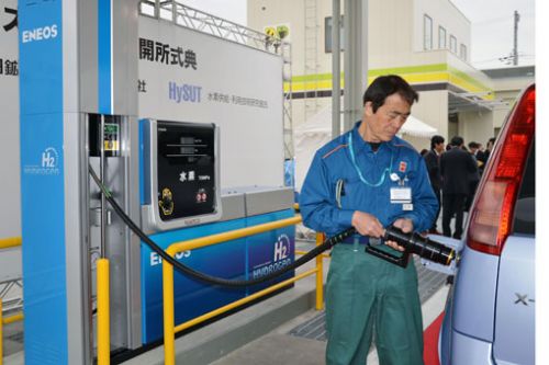 燃料電池車具備行駛時不會排放二氧化碳、與純電動汽車相比續(xù)航距離較長及燃料填充時間短等優(yōu)點。作為增長戰(zhàn)略之一,日本政府力爭2015年在4大城市圈(東京、大阪、愛知及福岡)設(shè)置100處加氫站。全球主要汽車廠商與日本國內(nèi)能源企業(yè)也就從2015年起全面開始普及達成了一致。