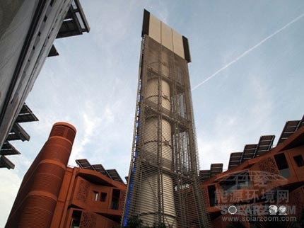 馬斯達爾科學技術(shù)研究所的獨特之處是,在院內(nèi)設置了風塔,通過從上部捕獲風,使院內(nèi)的溫度平均下降了6℃。并在風塔四角設置了LED照明,當整個院內(nèi)達到節(jié)能目標時(比阿布扎比的家庭平均節(jié)能50%以上),LED照明就會發(fā)出綠光,未達標時則顯示為紅光,紅色的燈光會督促用戶采取節(jié)能活動,比如上調(diào)空調(diào)溫度等(圖2)。