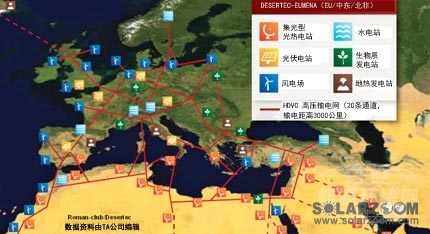 還有,“DESERTEC”和“地中海太陽能計劃”等廣域項目也已經(jīng)啟動,具體而言,就是在中東和北非的沙漠地區(qū)建設大規(guī)??稍偕茉窗l(fā)電設備,在向該地區(qū)供電的同時,通過高壓直流(HVDC)供電網(wǎng)向歐洲供電。