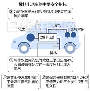 燃料電池車?yán)萌剂想姵卮偈寡鹾蜌浒l(fā)生化學(xué)反應(yīng)產(chǎn)生電力,以此驅(qū)動馬達并作為汽車驅(qū)動力。行駛期間的尾氣排放為零,在新一代汽車中,環(huán)保性能最高。有分析認(rèn)為,與純電動汽車相比,行駛距離將會更長。然而,在推進燃料電池車普及的過程中,制定防止氫爆炸的安全標(biāo)準(zhǔn)一直是一個課題。