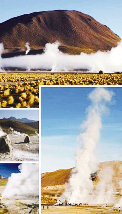 事實(shí)上,智利很早就開始研究地?zé)衢_發(fā)潛力,并于1907年在該國北部的地?zé)峁龋‥l Tatio)鉆得第一口勘探測試井,接著又在1931年相繼鉆得兩口井。地?zé)峁仁侨蜃罡叩拈g歇泉聚集地,高出海平面大約4200米,盡管地?zé)峁乳g歇泉的噴發(fā)高度很少超過幾英尺(蒸汽升騰的高度更高),但其產(chǎn)生的影響驚人,它形成了安第斯山脈的美麗背景,讓它看起來猶如另外一個(gè)世界。