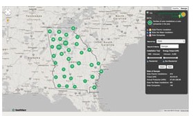 該太陽(yáng)能地圖由喬治亞能源數(shù)據(jù)(Georgia Energy Data)發(fā)布,該州共有151家太陽(yáng)能企業(yè)。