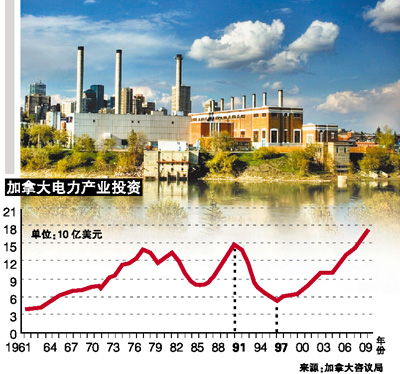從上世紀(jì)90年代開(kāi)始,加拿大的電力基礎(chǔ)設(shè)施投資就開(kāi)始出現(xiàn)下滑的趨勢(shì)。數(shù)據(jù)顯示,由于產(chǎn)能過(guò)剩和經(jīng)濟(jì)不振等問(wèn)題,自1991年達(dá)到150億美元的高峰后,1997年投資額迅速下降到僅53億美元。