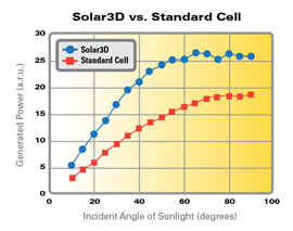 功率輸出:Solar3D VS 普通太陽能電池