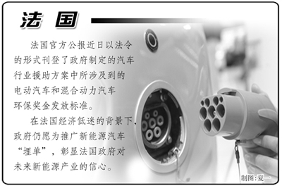 就在法國(guó)徘徊在新能源發(fā)展何去何從的十字街口時(shí),新能源汽車(chē)或許是法國(guó)新能源領(lǐng)域的惟一亮點(diǎn)。據(jù)法國(guó)媒體報(bào)道,法國(guó)官方公報(bào)近日以法令形式刊登了政府制定的汽車(chē)行業(yè)援助方案中電動(dòng)汽車(chē)和混合動(dòng)力汽車(chē)環(huán)保獎(jiǎng)金發(fā)放標(biāo)準(zhǔn)。在法國(guó)經(jīng)濟(jì)低迷的背景下,政府仍愿為推廣新能源汽車(chē)“埋單”,彰顯法國(guó)政府對(duì)未來(lái)新能源產(chǎn)業(yè)的信心。