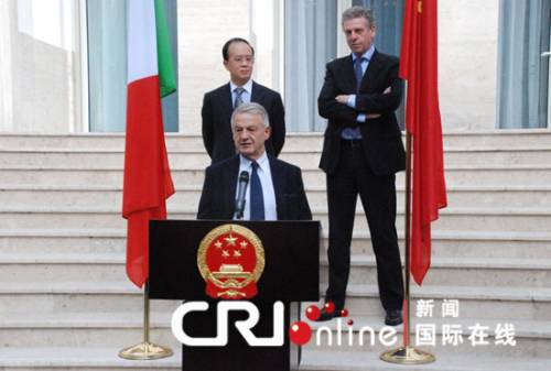 意大利當(dāng)?shù)貢r(shí)間10日上午,意大利環(huán)境部長(zhǎng)科里尼在中國(guó)駐意大利使館向丁偉大使贈(zèng)送了一輛雪鐵龍電動(dòng)車,旨在推動(dòng)使館的綠色出行理念。