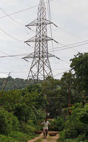 中國儲能網(wǎng)訊:驚人的失?。航衲晗奶?,印度出現(xiàn)大范圍停電事故影響了約6.2億人。圖中是斷電時,一名男子從高哈蒂市郊的輸電線旁走過。(圖片來源:AP | Anupam Nath)