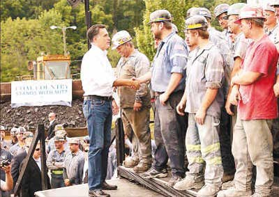 共和黨候選人羅姆尼在訪問俄亥俄州的一座煤礦
