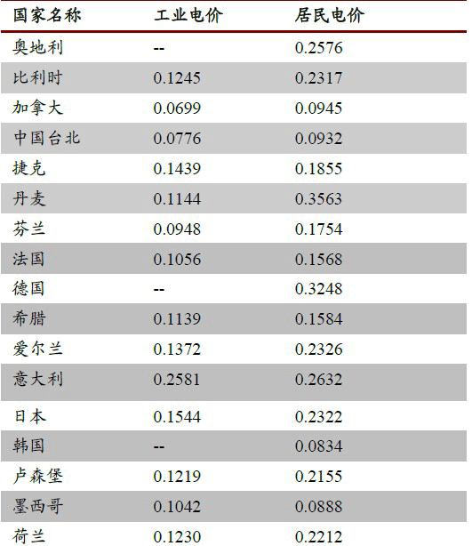 中國(guó)儲(chǔ)能網(wǎng)訊:根據(jù)國(guó)際能源署(IEA)統(tǒng)計(jì)的主要經(jīng)濟(jì)體國(guó)家工業(yè)用電與居民用電價(jià)格數(shù)據(jù),對(duì)比目前估算的光伏發(fā)電成本,光伏發(fā)電成本已經(jīng)低于意大利、德國(guó)、葡萄牙、西班牙、日本、西班牙等國(guó)的居民用電價(jià)格,接近加利福利亞、墨西哥等國(guó)的零售電價(jià)。當(dāng)系統(tǒng)售價(jià)下降到2 美元以下時(shí),除了部分能源非常豐富的國(guó)家地區(qū)外,光伏發(fā)電成本都將低于居民電價(jià),包括德國(guó)、英國(guó)、法國(guó)、西班牙、澳大利亞、亞利桑那州等??梢哉f今年年底,光伏發(fā)電成本就將低于大部分國(guó)家的居民零售電價(jià),實(shí)現(xiàn)居民端的光伏平價(jià)上網(wǎng)。(數(shù)據(jù)來源:IEA,宏源證券研究所整理)