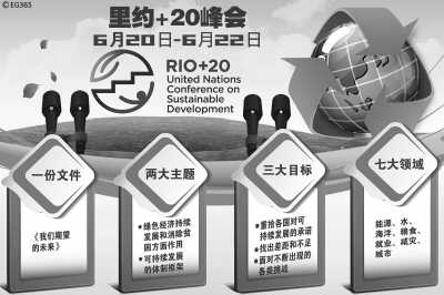 時隔20年,聯(lián)合國可持續(xù)發(fā)展大會重回巴西里約熱內(nèi)盧。為了紀念20年前在同一座城市舉辦的聯(lián)合國環(huán)境與發(fā)展大會,本次大會也被稱為“里約+20”峰會,峰會主題被定為“消除貧困和可持續(xù)發(fā)展下的綠色經(jīng)濟”和“促進可持續(xù)發(fā)展機制框架”,共有來自191個國家和地區(qū)的5萬名代表參會,其中包括86位國家元首和政府首腦。