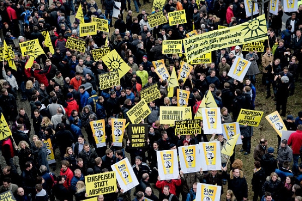 此項(xiàng)運(yùn)動將整個光伏行業(yè)囊括在內(nèi)引起了廣泛關(guān)注,多是因?yàn)槠渌麌液偷貐^(qū)曾將德國上網(wǎng)電價體制視為典范,特別是光伏產(chǎn)生的早期,這種體制還使得清潔能源深入人心還為社會解決了部分就業(yè)問題。