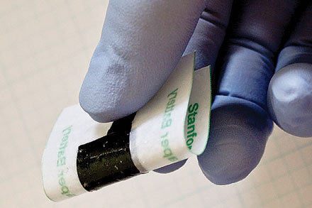這是斯坦福大學(xué)一個(gè)材料科學(xué)家制造的,薄膜碳納米管涂在另一張表層含有金屬的鋰化合物 納米管。這些很薄的雙層薄膜放在普通紙張的兩面,紙張既是電池的支撐結(jié)構(gòu),同時(shí)也起到分離電極的作用。鋰作為電極,而碳納米管層則是電流集合管。