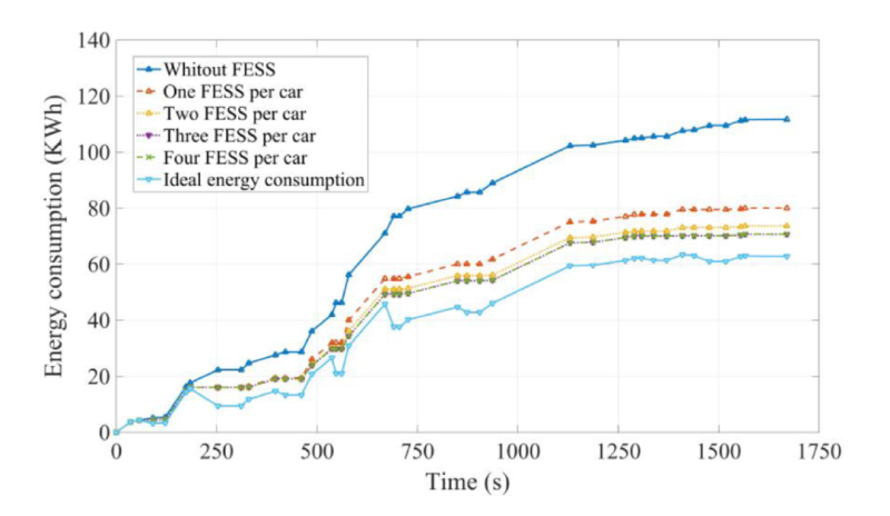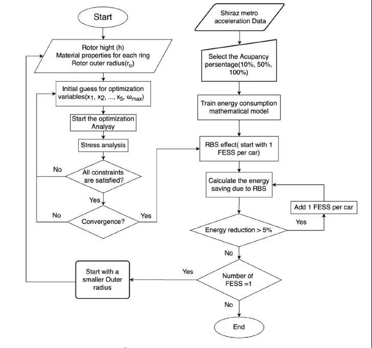 研究人員選擇一種多環(huán)飛輪轉(zhuǎn)子作為基本模塊,通過對每節(jié)車廂飛輪轉(zhuǎn)子模塊的個數(shù)進(jìn)行最優(yōu)設(shè)計,來降低輕軌列車的能耗。在優(yōu)化算法中考慮角加速度和重力影響,將單位體積能量作為成本函數(shù),利用實時的速度和加速度數(shù)據(jù),對設(shè)拉子城市列車系統(tǒng)進(jìn)行了通用模塊化設(shè)計。最后,研究人員得出結(jié)論:使用15個所設(shè)計的飛輪儲能模塊可以為這一線路節(jié)省35.1%的能源,而增加飛輪儲能模塊的容量并不一定會降低列車的能量消耗。