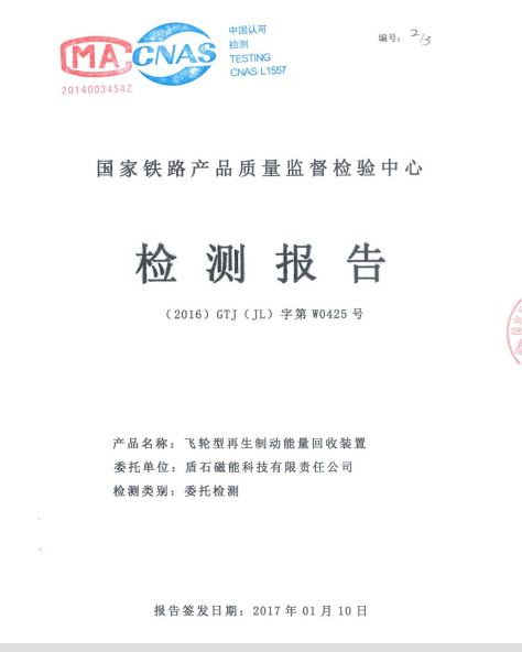 盾石磁能科技公司GTR飛輪型再生制動能量回收裝置測試認證的成功,證明該裝置技術成熟、性能優(yōu)越,運行安全穩(wěn)定。同時,也意味著GTR飛輪型再生制動能量回收裝置符合行業(yè)準入條件,在城軌列車再生制動能量回收利用、抑制牽引網(wǎng)壓跌落、供電區(qū)間穩(wěn)壓等應用中具有卓越的技術優(yōu)勢,并將很快可以掛網(wǎng)應用。
