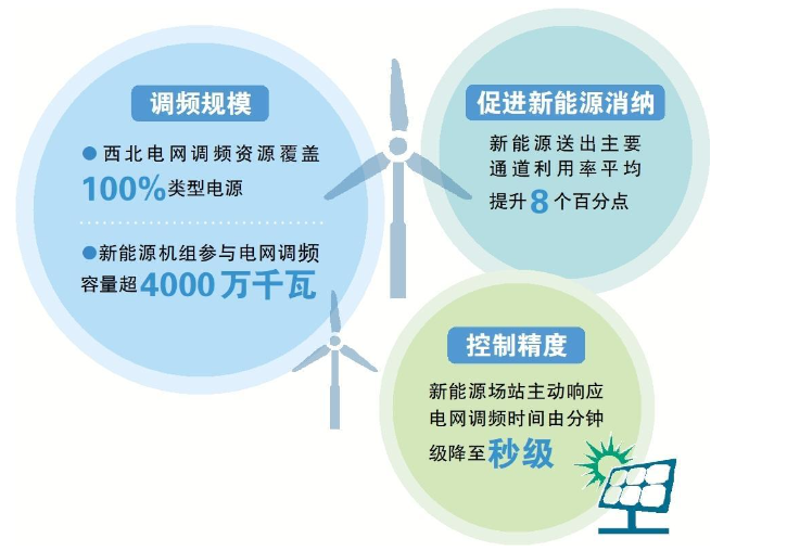 “我們通過應用快速頻率響應控制技術(shù)讓新能源變成電網(wǎng)調(diào)頻的重要資源。”國網(wǎng)西北分部調(diào)度控制中心主任任景介紹,“目前,西北地區(qū)已有超過4000萬千瓦裝機的新能源機組可參與電網(wǎng)一次調(diào)頻,規(guī)模居全國區(qū)域電網(wǎng)首位?!?