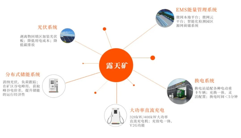 結(jié)合光伏發(fā)電、分布式儲能系統(tǒng)充放電,可滿足園區(qū)電動車輛的用電需求,降低電動汽車充電成本,打造零碳礦區(qū);通過EMS能量管理系統(tǒng)可實現(xiàn)光伏+儲能+充電+換電的協(xié)同運行,通過消納光伏和負荷跟蹤,最大化提升系統(tǒng)運行的經(jīng)濟性。