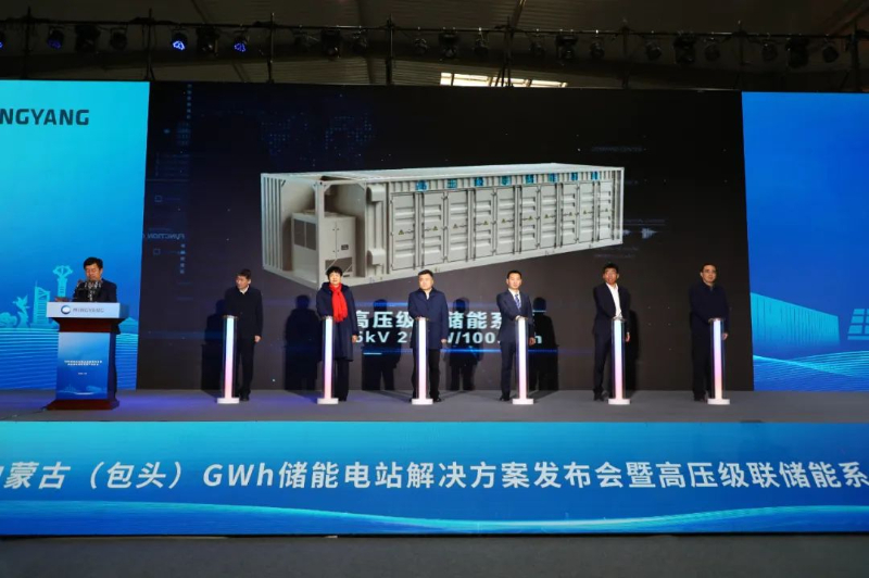 隨著儲能電站從MWh時代邁向GWh時代,明陽集團此次推出的35kV高壓級聯(lián)儲能系統(tǒng)憑借其領先的技術優(yōu)勢,成為GWh儲能電站的最優(yōu)解決方案之一。該系統(tǒng)具備單機容量大、能量轉換效率高、系統(tǒng)協(xié)調控制簡單、安全性高、造價低、電池壽命長以及電網支撐能力強等多重優(yōu)點。此次下線的產品要針對“三北地區(qū)”以及“沙戈荒”大基地新型應用場景進行研發(fā),能為電網提供更強的調峰調頻能力,更好地支撐新能源發(fā)電的接入和電網的穩(wěn)定運行。