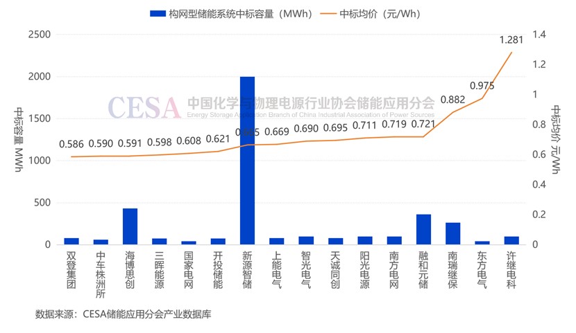 圖4 2024年部分供應(yīng)商構(gòu)網(wǎng)型儲(chǔ)能系統(tǒng)中標(biāo)規(guī)模及其均價(jià)