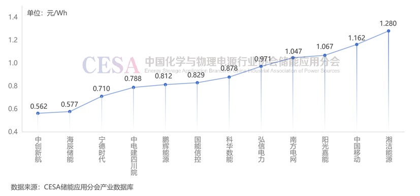 圖5 2024年部分企業(yè)工商業(yè)2h鋰電儲(chǔ)能系統(tǒng)采購中標(biāo)單價(jià)