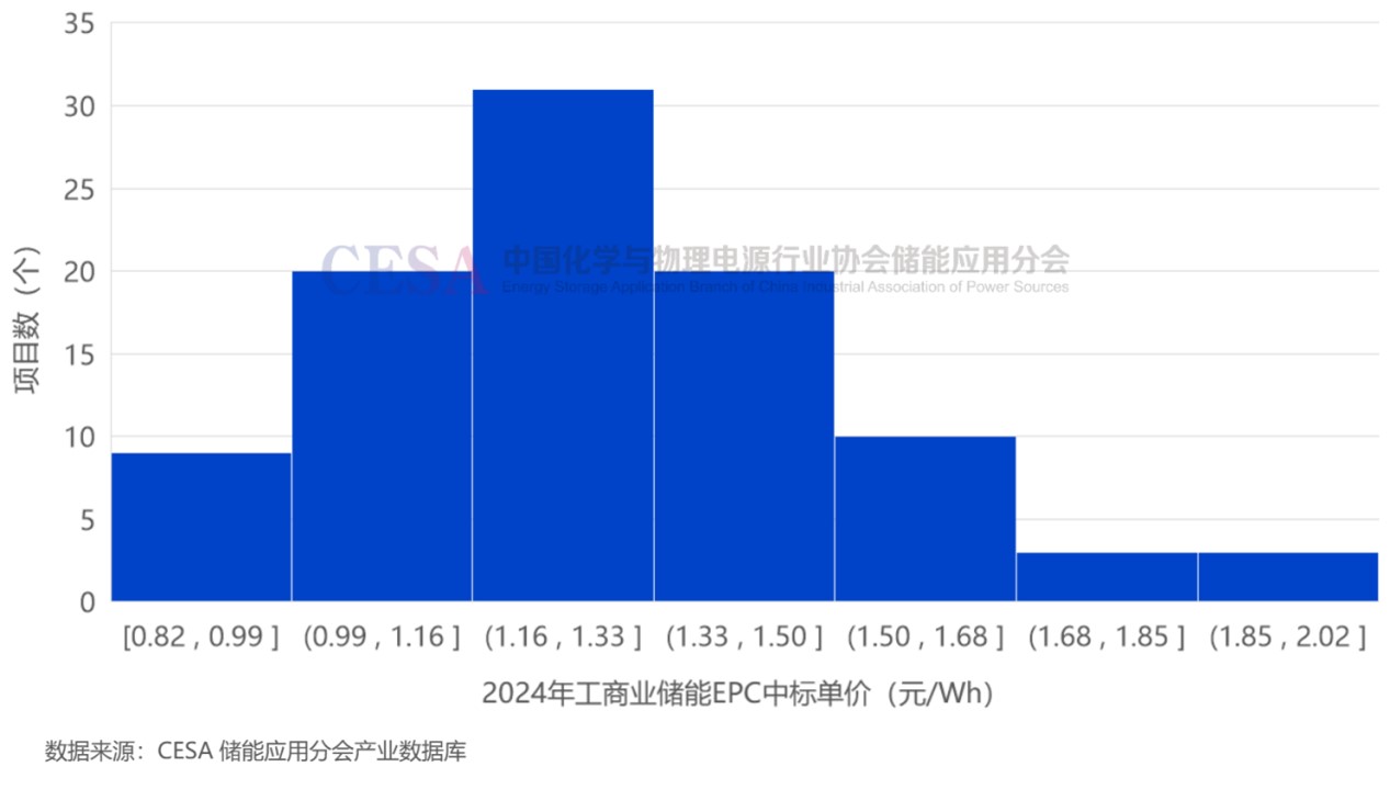 圖2 2024年工商業(yè)儲(chǔ)能EPC中標(biāo)單價(jià)分布
