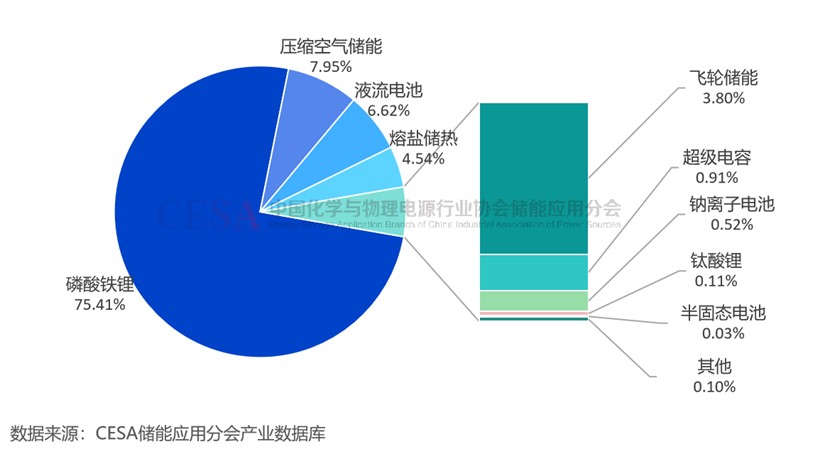 圖 2024年混合儲(chǔ)能采招落地項(xiàng)目中各技術(shù)路線規(guī)模占比