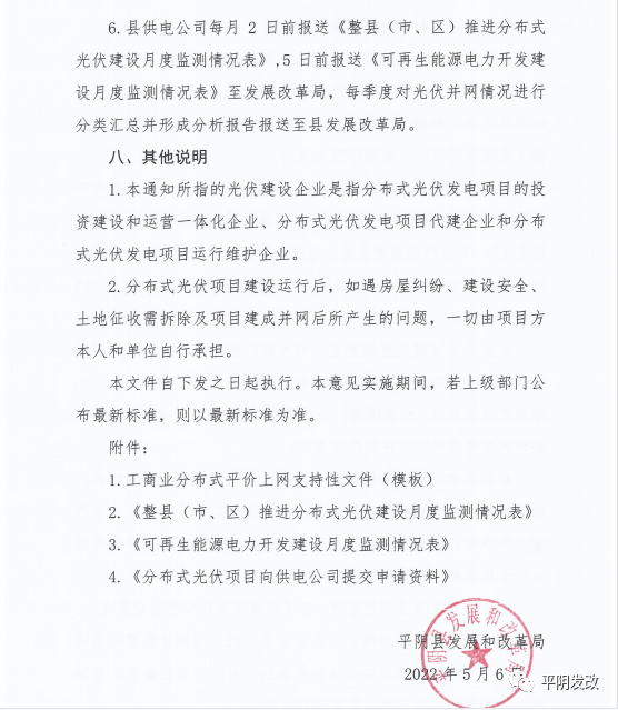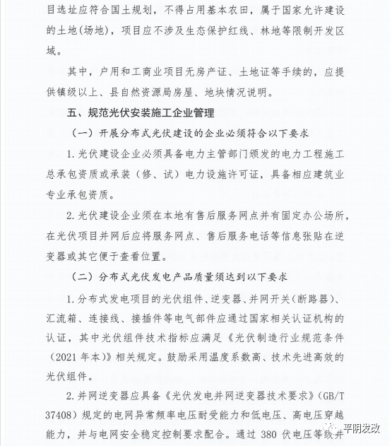 此外,整縣分布式開發(fā)按照“光伏+儲能”方式推進,根據(jù)具體消納情況配建或租賃不低于15%、2小時的儲能設施。電網消納能力不足時,應提高儲能配置比例及充放電時長,確保分布式光伏就地就近消納、滿足95%利用率要求。