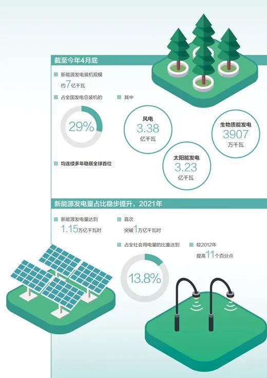 近年來,我國以風(fēng)電、光伏發(fā)電為代表的新能源發(fā)展成效顯著,裝機(jī)規(guī)模穩(wěn)居全球首位,發(fā)電量占比穩(wěn)步提升,成本快速下降,已基本進(jìn)入平價(jià)無補(bǔ)貼發(fā)展的新階段。國家能源局新能源和可再生能源司有關(guān)負(fù)責(zé)人介紹,截至今年4月底,新能源發(fā)電裝機(jī)規(guī)模約7億千瓦,占全國發(fā)電總裝機(jī)的29%。陸上風(fēng)電、光伏發(fā)電成本快速下降,截至2021年底,二者平均度電成本較2012年分別下降48%和70%。但是,新能源開發(fā)利用仍存在電力系統(tǒng)對大規(guī)模高比例新能源接網(wǎng)和消納的適應(yīng)性不足、土地資源約束明顯等制約因素。