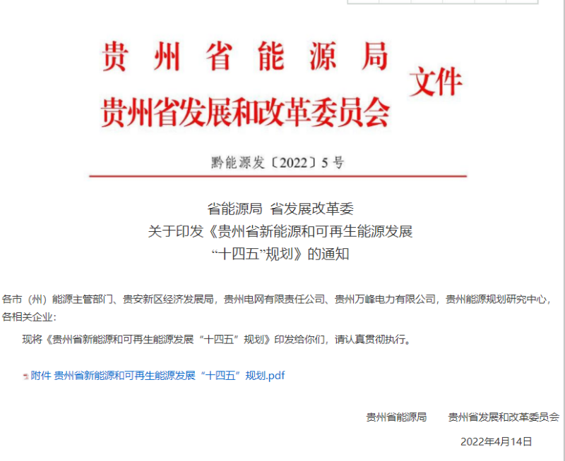 中國(guó)儲(chǔ)能網(wǎng)訊:4月19日,貴州省新能源和可再生能源發(fā)展“十四五”規(guī)劃發(fā)布。貴州省規(guī)劃了新能源與可再生能源發(fā)電裝機(jī)。到2025年,新能源與可再生能源發(fā)電裝機(jī)6546萬(wàn)千瓦;非水電可再生能源裝機(jī)4265萬(wàn)千瓦。其中水電裝機(jī)2281萬(wàn)千瓦,風(fēng)電裝機(jī)1080萬(wàn)千瓦,光伏發(fā)電裝機(jī)3100萬(wàn)千瓦,生物質(zhì)能發(fā)電裝機(jī)85萬(wàn)千瓦。