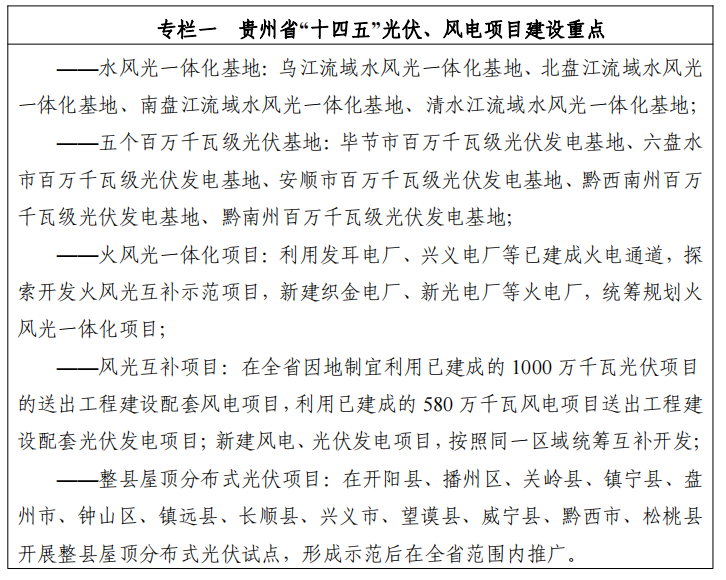 此外,貴州省對(duì)于光伏和風(fēng)電等項(xiàng)目的投資進(jìn)行了匡算?!笆奈濉逼陂g,全省新能源與可再生能源項(xiàng)目投資約1234億元,其中: