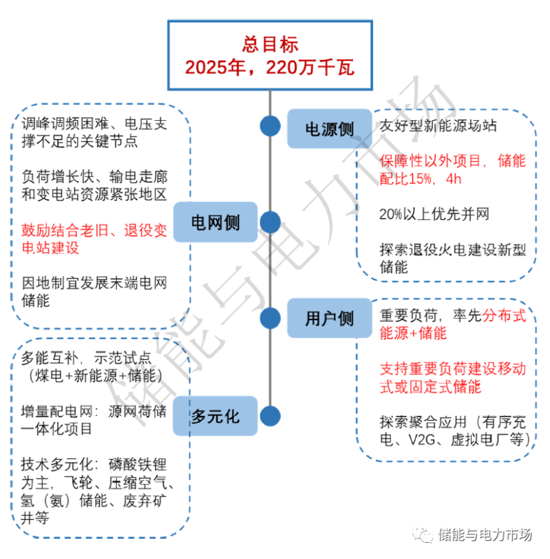 為實(shí)現(xiàn)此目標(biāo),電源側(cè)對(duì)非保障性新能源發(fā)電項(xiàng)目提出儲(chǔ)能配置要求,并推廣獨(dú)立共享儲(chǔ)能模式;電網(wǎng)側(cè)著重在關(guān)鍵電網(wǎng)節(jié)點(diǎn)布局儲(chǔ)能系統(tǒng),鼓勵(lì)結(jié)合老舊、退役變電站建設(shè)儲(chǔ)能試點(diǎn)項(xiàng)目;用戶(hù)側(cè)將率先推動(dòng)分布式能源+儲(chǔ)能的應(yīng)用。