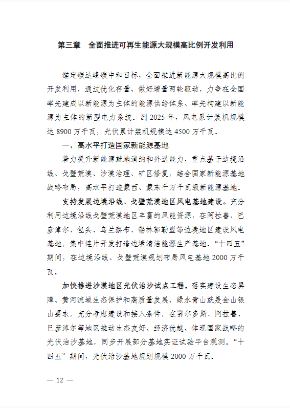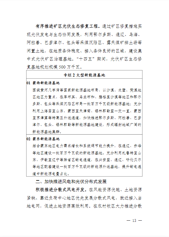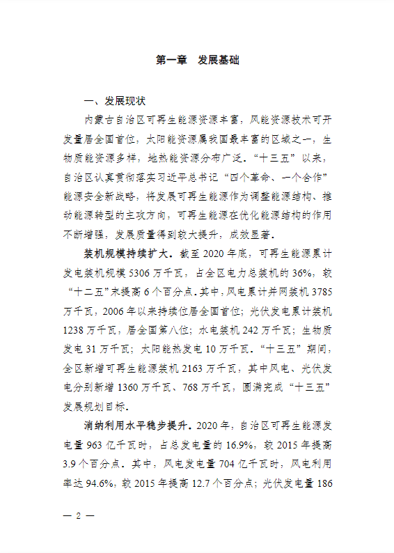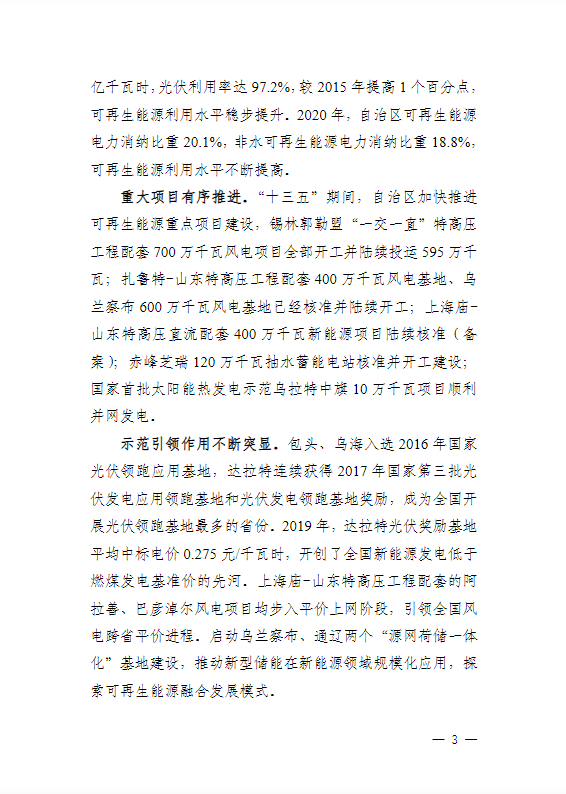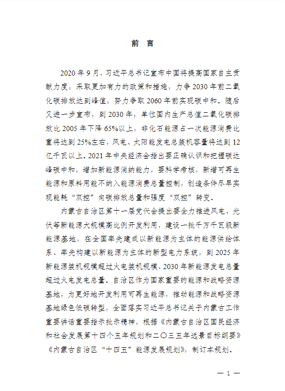 內(nèi)蒙古自治區(qū)能源局關(guān)于印發(fā)《內(nèi)蒙古自治區(qū)“十四五”可再生能源發(fā)展規(guī)劃》的通知