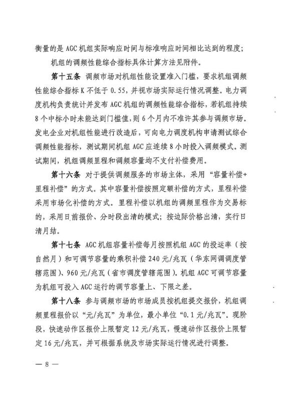 在2019年版文件要求綜合調(diào)頻性能指標(biāo)不低于0.53,參與調(diào)頻市場(chǎng)的報(bào)價(jià)上限12元/MW。此次文件對(duì)調(diào)頻性能指標(biāo)與報(bào)價(jià)上線(xiàn)都有提升。