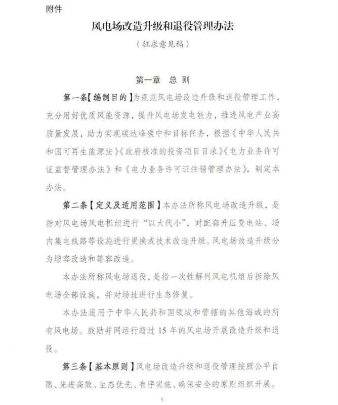 《征求意見稿》明確,該辦法適用于中華人民共和國領(lǐng)域和管轄的其他海域的所有風(fēng)電場。鼓勵并網(wǎng)運(yùn)行超過15年的風(fēng)電場開展改造升級和退役。