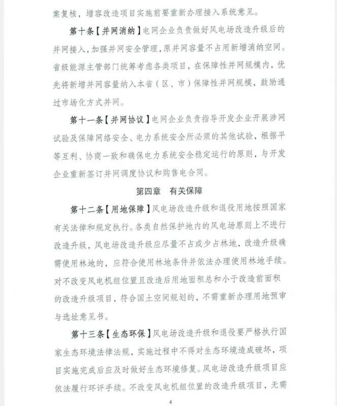 并網(wǎng)消納方面,電網(wǎng)企業(yè)負(fù)責(zé)做好風(fēng)電場改造升級后的并網(wǎng)接入,加強(qiáng)并網(wǎng)安全管理,原并網(wǎng)容量不占用新增消納空間。省級能源主管部門統(tǒng)籌考慮各類項(xiàng)目,在保障性并網(wǎng)規(guī)模內(nèi),優(yōu)先將新增并網(wǎng)容量納入本?。▍^(qū)、市)保障性并網(wǎng)規(guī)模,鼓勵通過市場化方式并網(wǎng)。