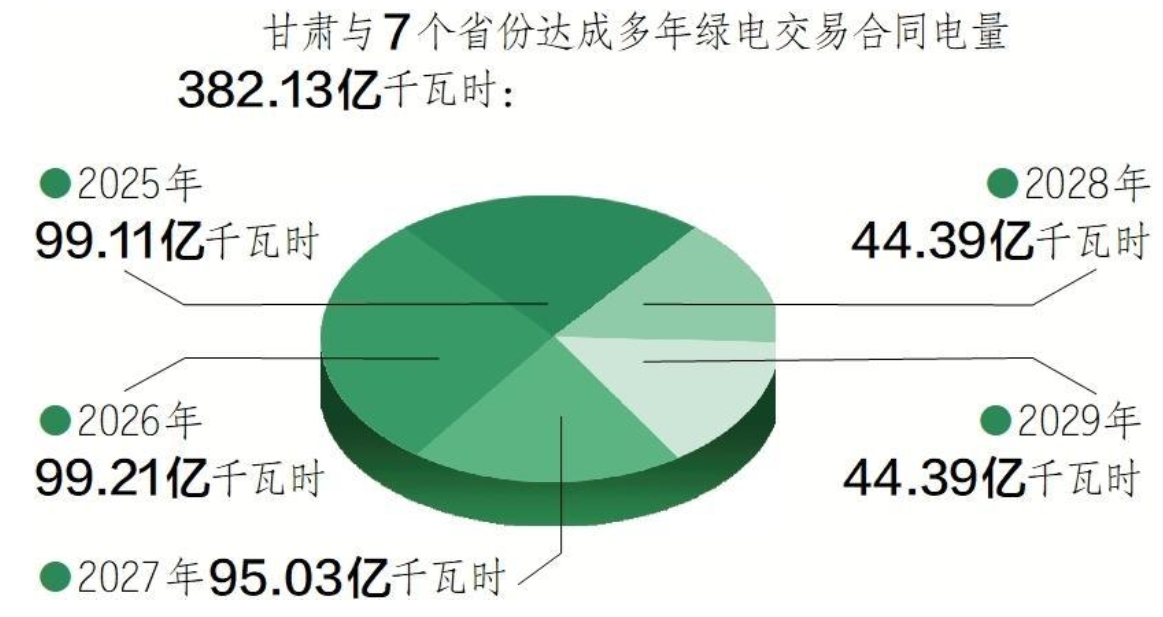 中國(guó)儲(chǔ)能網(wǎng)訊:1月17日從甘肅電力交易中心有限公司獲悉,2025年甘肅與北京、上海、天津、安徽、四川、重慶、陜西7個(gè)省份達(dá)成多年綠電交易合同電量382.13億千瓦時(shí)。其中,2025年99.11億千瓦時(shí),外送交易規(guī)模居國(guó)家電網(wǎng)有限公司系統(tǒng)第一位,2026年99.21億千瓦時(shí)、2027年95.03億千瓦時(shí)、2028年44.39億千瓦時(shí)、2029年44.39億千瓦時(shí)。