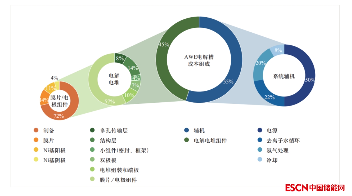 由綠氫成本分析可知,電極、膜片、雙極板等成本占比較高,但目前中國在關(guān)鍵材料、核心部件上的研發(fā)水平與國外差距較大,且嚴(yán)重依賴國外進口,不具備批量生產(chǎn)的能力,這嚴(yán)重制約了中國電解制氫產(chǎn)業(yè)的規(guī)?;l(fā)展。因此,亟待加強關(guān)鍵材料核心部件的自主化研發(fā)水平,加快形成具有完全自主知識產(chǎn)權(quán)的批量制備方法,全面實現(xiàn)關(guān)鍵材料與核心部件的國產(chǎn)化。