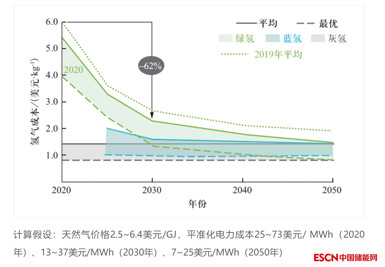 圖 5 不同生產(chǎn)路徑氫氣成本變化趨勢